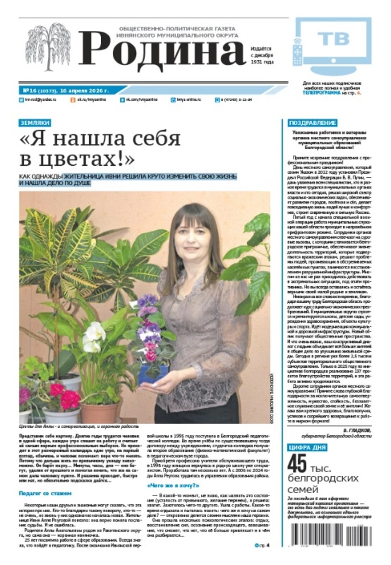 Газета «Родина» № 16 от 16 апреля 2026 года
