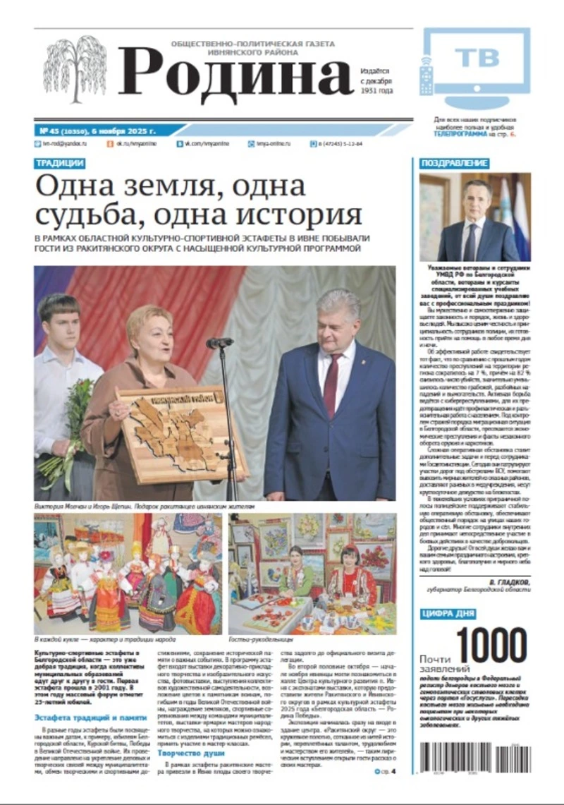 Газета «Родина» № 45 от 6 ноября 2025 года