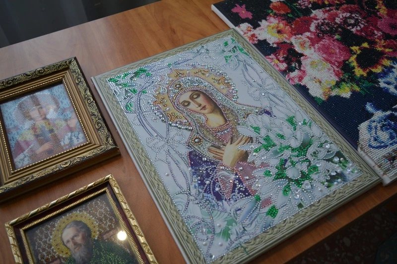 «Бисером, конечно, вышивать сложнее. Мизерная иголка и такая же ниточка. Надо аккуратно вдеть, положить нить в нужном направлении. Правильно расположить цвета. Эта кропотливая работа требует усидчивости и… хорошего зрения», — рассказывает мастерица. — «Зрение уже падает, подсвечиваю фонариком. Стразами полегче…».
