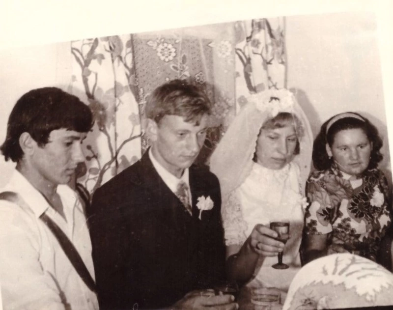 Роспись назначили на 1 июля 1975 года, а свадьбу гуляли 28 июня. Расписали молодых председатель сельсовета Николай Орехов и секретарь Иван Костромицкий. На обычных «Жигулях» после росписи молодожёны ездили в Солотино приглашать гостей на свадьбу. Гуляли в доме два дня. На второй варили плов, наряжались, приходили ряженые с песнями и пожеланиями.