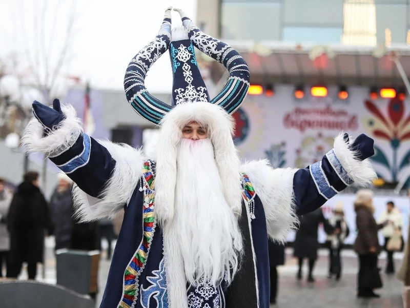 Слепленные на сцене вареники тут же варили, а потом со сметаной раздавали на пробу зрителям. С главной сцены участников и зрителей праздника приветствовали дедушки морозы разных регионов: якутский дух холода Чысхаан, кабардинский Уэс Дадэ, татарский Кыш Бабай, дагестанский Шаратель и Дед Мороз Черноземья.