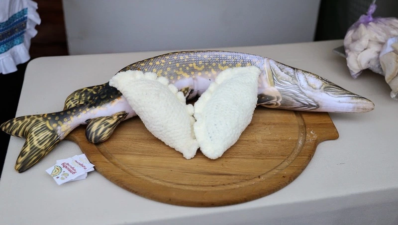 «Мы могли выбрать рецепт с любой рыбой, которая водится в Волге, и предпочли щуку, потому что она обитает и в белгородских реках», — говорит руководитель управления молодёжной политики, туризма и спорта администрации муниципалитета Елена Быкова. — «Сама щука — довольно сухая, поэтому к ней добавляется сало и лучок. Готовится рыбный фарш, из которого и делают начинку для вареников. Мы всё приготовили заранее, привезли сюда в замороженном виде и здесь уже варили для угощения гостей праздника».