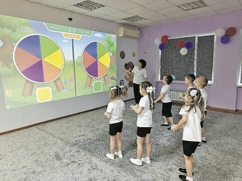 Интерактивная стена «ДвижУм»: 33 игры, которые разделены на шесть игровых блоков с разными уровнями сложности для психологической поддержки и коррекции эмоционального состояния воспитанников, а также развития физических качеств, координационных способностей, двигательной активности. Благодаря этому воспитанники смогут закреплять пройденный материал по математике, окружающему миру, развитию речи. Оборудование помогает развивать у детей меткость, ловкость и скорость (проектор, 33 игры, комплект датчиков, 24 мяча, корзина для хранения мячей).