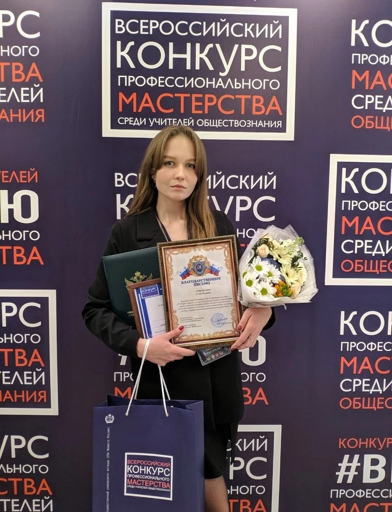 В 2025 году Елена Григоренко стала победителем районного этапа конкурса «Педагогический дебют». А в июне этого же года к неё пришла её громкая, заслуженная победа. Наша героиня приняла участие в IV всероссийском конкурсе профессионального мастерства учителей обществознания. Из 1 700 участников со всей России в финал прошли лишь 35 лучших. Елена Григоренко — учитель истории и обществознания Вознесеновской школы — вошла в их число, блестяще продемонстрировав свои профессиональные навыки, глубокие знания и педагогическое мастерство в Москве. Учитель награждена почётной грамотой и благодарностью от главы Следственного комитета РФ Александра Бастрыкина и благодарственным письмом от Министерства юстиции РФ.