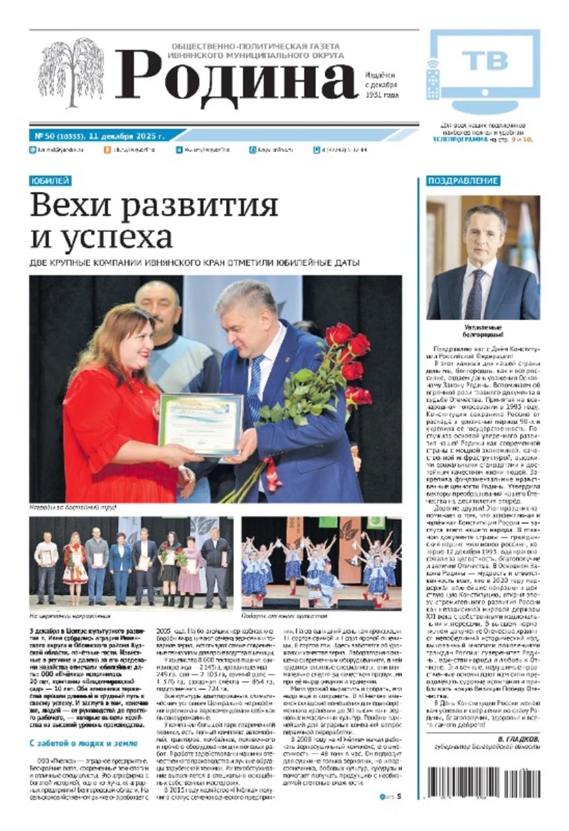 Газета Ивнянского мунокруга «Родина» выходит один раз в неделю по четвергам.