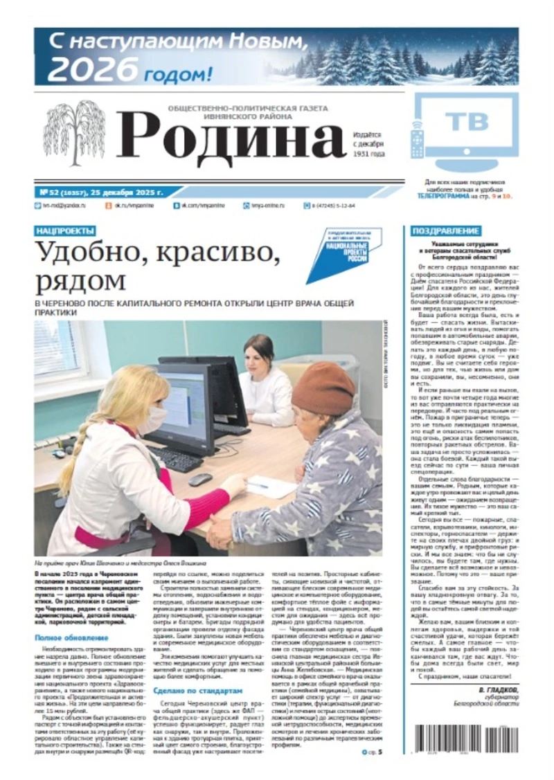 Газета Ивнянского мунокруга «Родина» выходит один раз в неделю по четвергам.