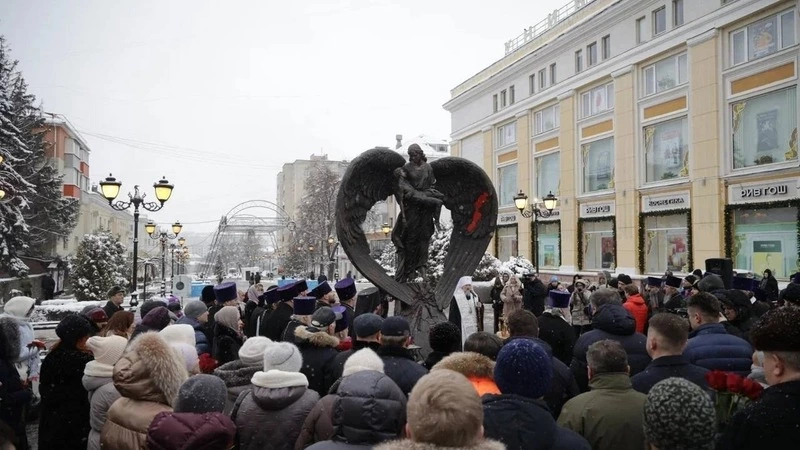 Памятник установлен на месте трагедии и сменил арт-объект «Сердце», который был народным мемориалом в память о погибших. Обстрел Белгорода 30 декабря 2023-го унёс жизни 25 белгородцев. Ещё более 100 получили ранения.