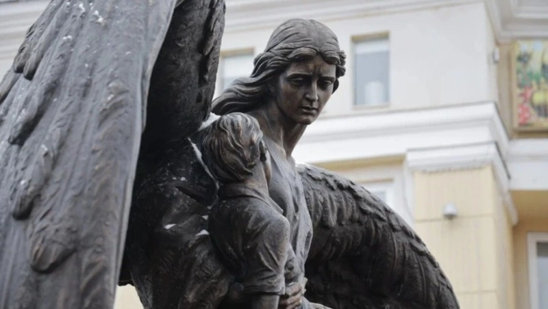Новая бронзовая композиция — в виде ангела, бережно держащего на руках ребёнка. Его крылья символически образуют сердце.